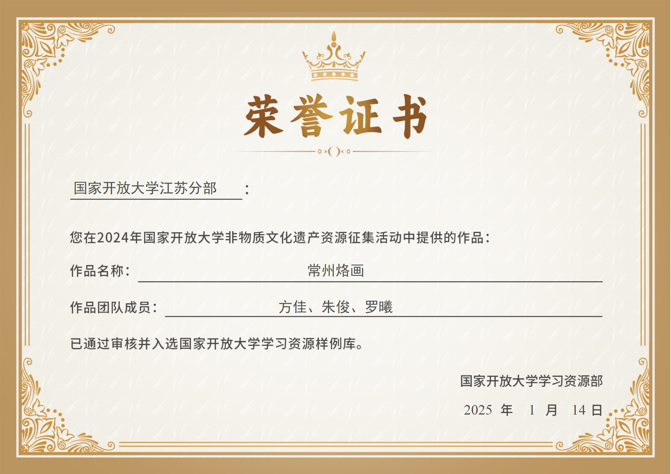 划,常州市级烙画非遗传承人朱俊大师主讲,常州开放大学终